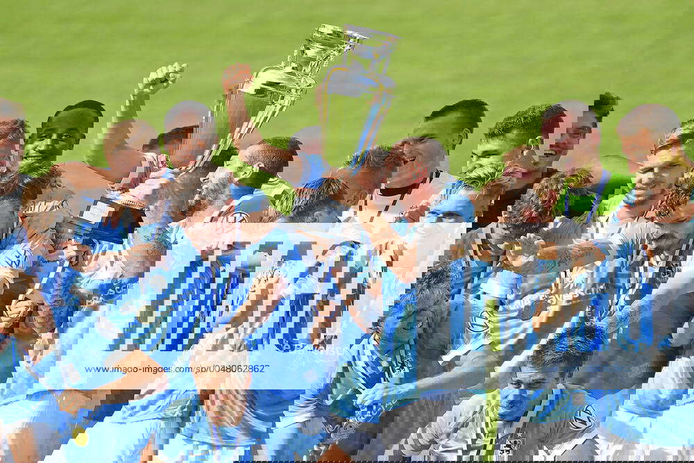 Sascha MOELDERS TSV 1860 Muenchen with the cup, cup, trophy at the award ceremony, team photo