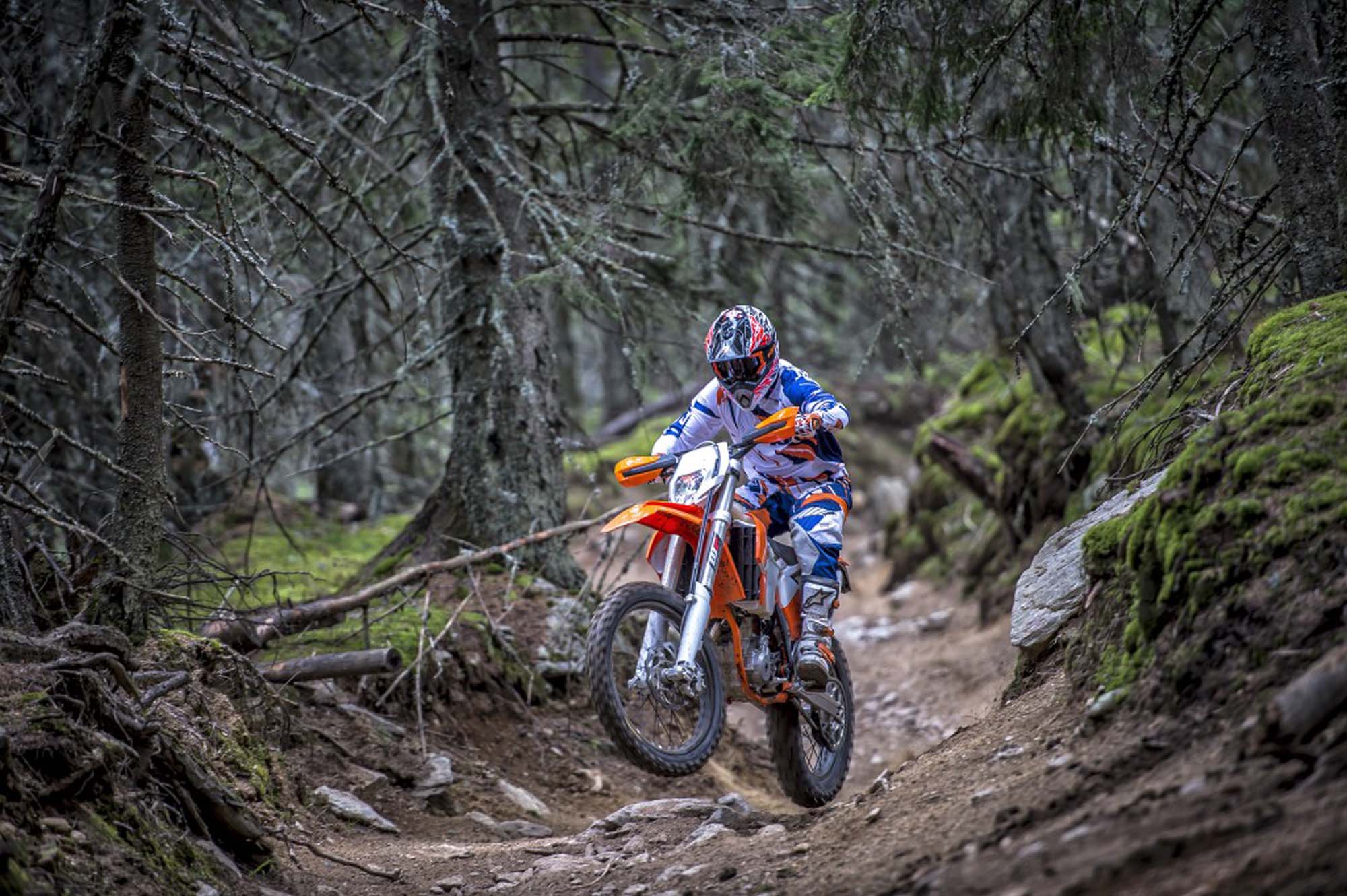 Mit einem komplett neuen Fahrwerk, einer neuen Federung, einem rennerprobten Bodywork, einer fahrerorientierten Ergonomie und natürlich einem der siegreichsten 450-cm³-Motoren seiner Klasse hat die KTM 450 EXC-F das Podium fest im Blick.