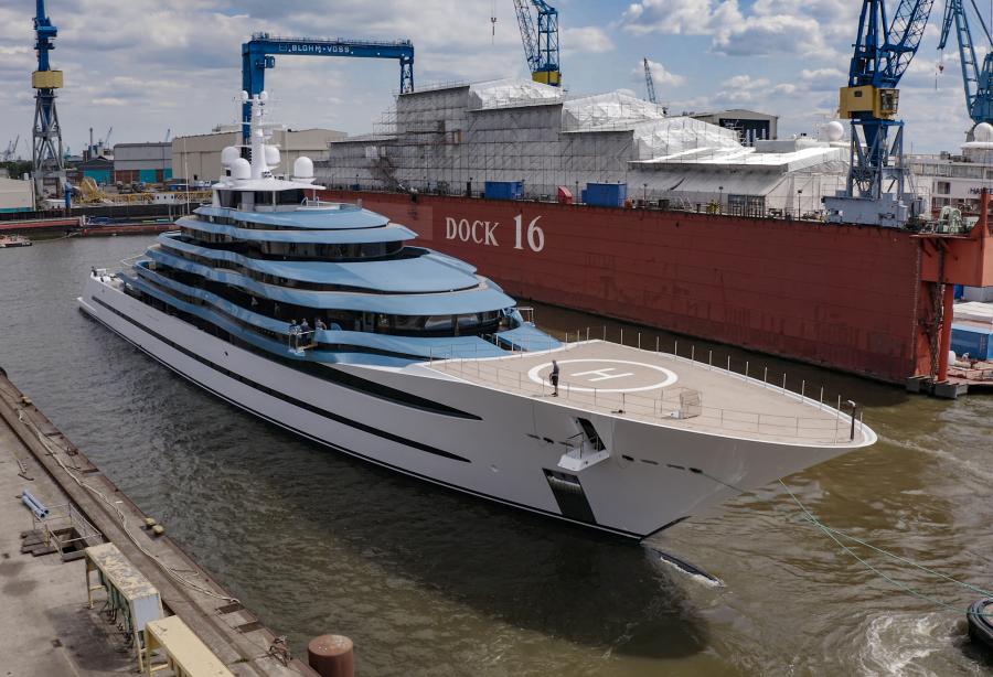 The 156metre Dilbar arrived in Hamburg today for a major refit project at Lürssen. Big Yachts