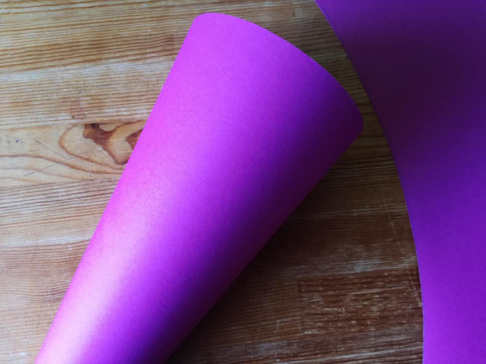 1. Schritt: Schultütenrohling zusammenrollen. Zum Basteln einer Schultüte nehmen Sie die 80 x 80 cm große Pappe zur Hand und drehen aus ihr eine schöne Tüte mit etwa 25 cm Durchmesser am oberen Ende und einem spitz zulaufendem Abschluss. Verkleben Sie die Tüte anschließend mit Papierkleber und Klebestreifen zur Fixierung.