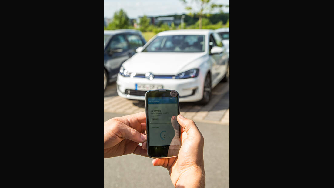Vollautomatische Fahrt zur Parklücke Ein EGolf, der zum Parken um die Ecke fährt AUTO MOTOR