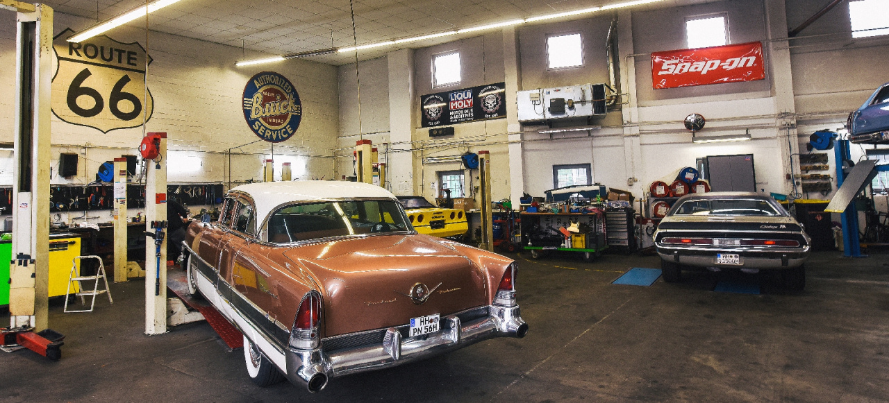 Hier kümmert sich unser Team auf fast 2000qm Fläche in der Werkstatt mit 3 Hebebühnen, auf 2 Außenbühnen, im Teileshop und im Büro um die Wünsche rund um Ihr US-Car. Durch die jahrzehntelange gemeinsame Arbeit in der Werkstatt hat unser Team viele praxisorientierte Erfahrung sammeln können, die man in keinem Lehrbuch findet. Dieses.