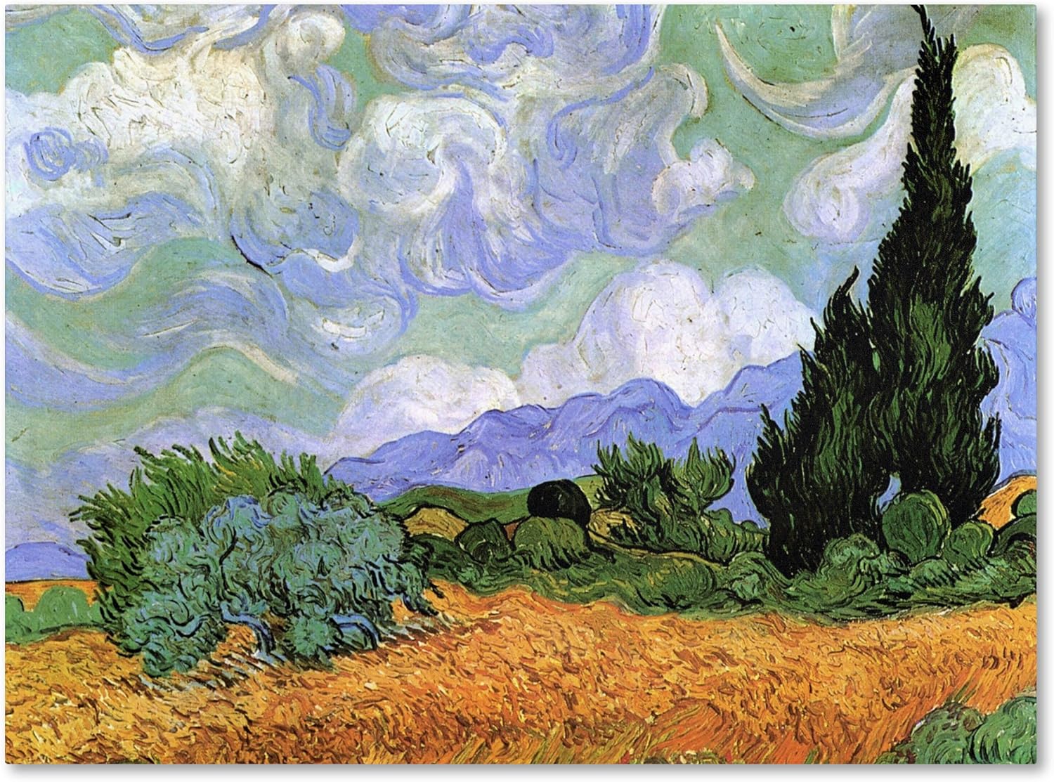Email: tomgurney1@gmail.com / Telefon: +44 7429 011000. Während seiner Zeit in Saint-Paul-de-Mauso (einer Nervenheilanstalt) in Saint-Rémy malte Vincent van Gogh eine Reihe von Szenen, in denen es entweder um Weizenfelder oder um Zypressen ging. Gelegentlich umfasste dieser Fokus beide Themen, und das ist bei dem treffend benannten Weizenfeld.